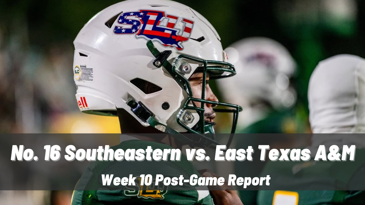The Game                                                      The Southeastern Louisiana Lions return home to Strawberry Stadium this Thursday night for another great Southland Conference matchup against the East Texas A&M Lions. Kickoff is set for 6 p.m. in Hammond, America. This week also marks Military Night, where all military members with identification receive free admission as the university honors those who serve.                                                                                                            Southeastern enters the contest at 6-2 overall and 4-0 in Southland Conference play, ranked No. 16 in the AFCA FCS Coaches Poll and No. 21 in the Stats Perform FCS Top 25. The Lions are undefeated against FCS opponents this season and have outscored them by an average of 33.2 points per game, according to @LionUpFootball on X, tied with No. 1 North Dakota State for the best point differential in the FCS.                                                                                                                                                                       The Southeastern Lions are also 3-1 all time against East Texas A&M, winning the last two meetings. While Southeastern is in the middle of a title race with Lamar and Stephen F. Austin, this week’s opponent cannot be overlooked. The Lions of Commerce, Texas may have a 2-6 record, but their level of play has been far stronger than the numbers suggest.