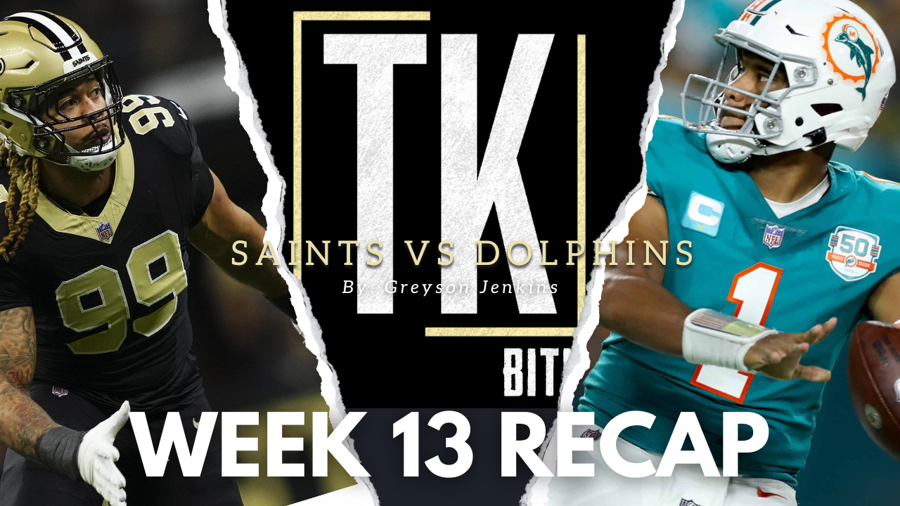 The Saints lose in Miami after a crazy final few minutes. Tyler Shough drove down the field and threw what could’ve been the potential game-tying touchdown, but then threw a “pick-two” on the two-point conversion. Naturally, the Saints converted an onside kick once again in Miami, recovered by the one and only Devaugn Vele. Unfortunately, the Saints were unable to drive down the field and ultimately lost a close game. However, there were some positives to this one: with Tyler Shough looking solid and making a potential game-winning throw to Olave that was dropped, Devaugn Vele having his breakout game, Charlie Smyth nailing a 56-yard field goal as his first official NFL field goal attempt, and young players on the defense making big plays. Let’s break all of that down, as well as another inept performance by Kellen Moore as the head coach. Tyler Shough Tyler Shough started extremely slow in this one, with two turnovers in the first half and no points, but turned it around massively to close it out, finishing 26/38 for 239 yards, two touchdowns, and one pick. He led a solid touchdown drive to start the second half, which ended with a Chris Olave touchdown on a scramble drill. He made multiple plays happen on the move and was able to navigate what felt like constant pressure relatively well. To end the game, Tyler Shough led the potential game-tying touchdown drive and also threw a perfect ball that would have given the Saints the lead, which went directly through Chris Olave’s hands. It was by no means a perfect game by Shough, as both picks (one doesn’t count statistically since it was on a two-point conversion attempt) were extremely poor throws. In addition to this, Shough did take four sacks, with a couple of them feeling like he should have been able to navigate the pocket better or potentially throw the ball away. Shough clearly has the potential to develop into the Saints' franchise quarterback, but the team desperately needs to build a more explosive weapon group around him. Devaugn Vele Through the 12 weeks of the NFL season before this one, many Saints fans (myself included) were questioning why the Saints traded for Devaugn Vele if they weren’t going to use him. He had nine catches for 91 yards and a touchdown before this game, and he nearly matched his season total with eight catches against the Dolphins. It seems as though Kellen Moore finally realized that Vele has very strong hands, and his size makes him the perfect weapon to use for in-breaking routes such as slants and digs. He made multiple tough catches in this one, some through contact and some where he had to drag his feet/legs to make the play. This is exactly what all of us Saints fans have wanted to see to justify the Saints having one less draft pick in the upcoming draft. If Vele continues to perform this well, the Saints may just have a true weapon on their hands… And if the Saints somehow go and add Carnell Tate, Chris Bell, or Elijah Sarratt to this wide receiver room with Vele and Olave, watch out. Charlie Smyth Charlie Smyth, the Saints' new starting kicker from Ireland, attempted and made his first-ever NFL field goal today, which he nailed from 56 yards away. It appeared in this one for a while that he may never even get in range to attempt one, but when the Saints called on him to make a play in a very high-stakes moment, he did his job. That was something that Blake Grupe failed to do this season for the Saints multiple times, and the fact that Kellen Moore was confident enough to trust Smyth from that distance in that scenario makes me extremely happy and confident in Smyth’s future. Also, not only did Smyth make the kick, but it looked like it may have been good from 65 yards plus. Now, this is only his first kick, and things could turn bad after this week, but an international player who fought tooth and nail on his own to get to where he is, and that hard work paying off is special. I really hope that Smyth continues to succeed and that the Saints can rely on him for years to come, because that would be one less thing for the Saints to worry about this offseason. Young Defensive Playmakers Kool-Aid McKinstry, Quincy Riley, and Danny Stutsman all flashed today for the Saints, making splashy plays that make me excited to see what they can do for this team in the future. Kool-Aid had an interception in the endzone and a huge TFL on a late fourth down, Quincy Riley had an interception that was wrongfully called incomplete in my eyes, and Danny Stutsman absolutely destroyed Devon Achane on a run in the first half. If all three of these guys are hits, and if Jonas Sanker continues to play at a solid level, it really would be a great boost for this team’s future. It would mean they could focus more on improving the offensive side of the ball, and potentially go snag a playmaker to add to the defensive line across from Chase Young, such as Arvell Reese. Quincy Riley has become the true CB1 for the Saints in my eyes, as I feel his coverage has been better, but Kool-Aid has made multiple big splash plays that, in the future, hopefully change games for this team. Kellen Moore I said it last week, and I’ll say it again this week: I’m done with Kellen Moore. If the Saints want to succeed in the future, they should fire Kellen Moore after this crapshow of a season is over. Moore called a horrific game in the first half, scheming up routes short of the sticks consistently, as well as giving touches to Evan Hull over Devin Neal. This is no slight to Evan Hull, as he did look alright when he was given the ball, but this is a team that needs to see what they have in Devin Neal for the future of this team. In the second half, Devin Neal was leaned on in the run game, and it paid off, so why couldn’t they do that in the first half? In addition, Kellen Moore seemed to be calling plays off of his “recently called plays” section of the playsheet, like I always do in Madden, as he painfully ca